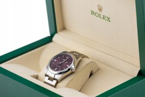 ROLEX OYSTER PERPETUAL 39 STEEL RED GRAPE DIAL REF. 114300