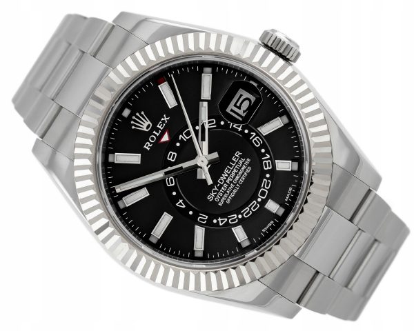 Przedmiotem sprzedaży jest przepiękny zegarek manufakturyROLEX SKY-DWELLER OYSTER STEEL BLACK DIAL REF. 326934 FULL SET(zdjęcia autentyczne – przedstawiają sprzedawany egzemplarz)