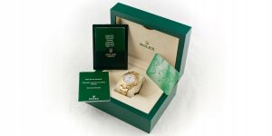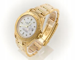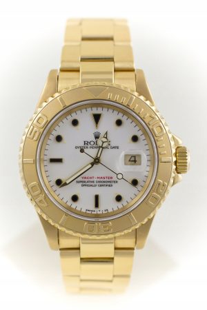 Rolex Yacht Master znany jest ze swojego codziennego aczkolwiek celowego stylu. Dzięki dużym indeksom oraz szerokim wskazówkom zarezerwowanych tylko dla profesjonalnych przyrządów jest niezwykle czytelny w każdej sytuacji. Charakterystyczną cechą owego zegarka jest pięknie wkomponowany, duży bezel wykonany w całości ze złota proby 750. Prezentowany model sprawdzi się zarówno na deku na otwartym morzu, jak i na lądzie w eleganckim klubie yachtowym.