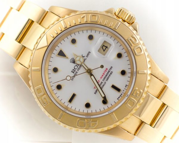 Przedmiotem sprzedaży jest przepiękny zegarek manufakturyROLEX YACHT MASTER GOLD 18K REF. 16628 FULL SET(zdjęcia autentyczne – przedstawiają sprzedawany egzemplarz)