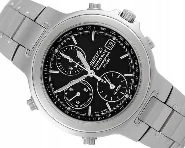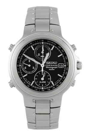 SEIKO PRESAGE CHRONOGRAPH DATE STEEL BLACK DIAL QUARTZ REF. 7T32-6N20 FULL SET