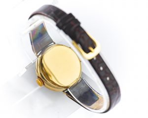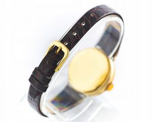 Referencja: -Mechanizm: ManualnyObudowa: żółte złoto 14k, 25mm, plastikowe szkiełkoPasek: brązowa skóra,  zapięcie klamrowe (stal)Komplikacje/funkcje: Mała sekundaZawartość dostawy: Firmowe pudełko, certyfikat autentyczności, firmowa fakturaStan: dobryPłeć: Zegarek damskiCena producenta: –
