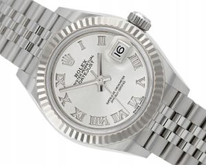 ROLEX LADY-DATEJUST 28 JUBILEE STEEL/WHITE GOLD 18K SILVER ROMAN DIAL REF. 279174 FULL SET